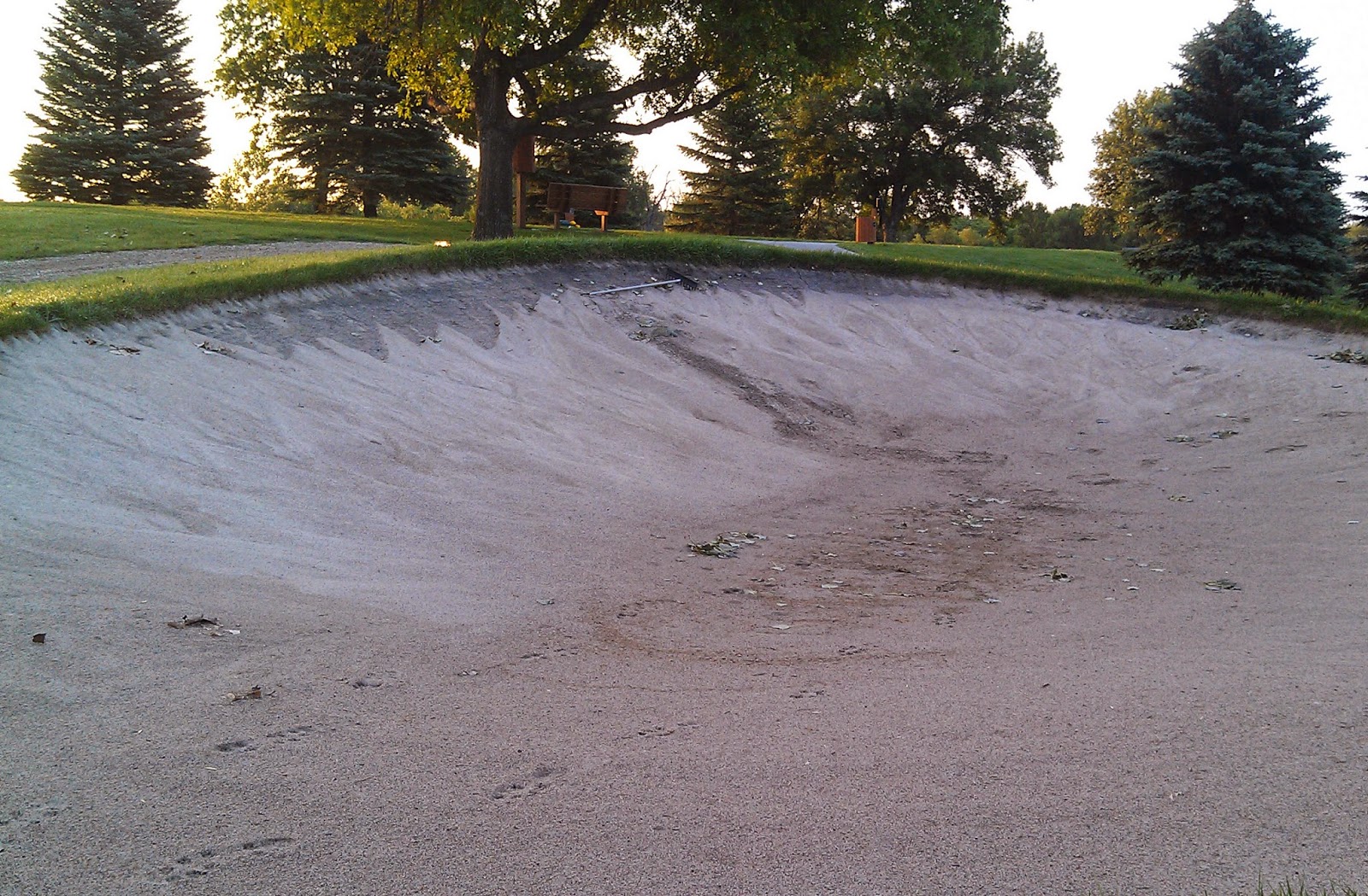 | The bunker by 15 green was one of the worst, but every bunker will still need to have some sand pushed back up on the face. |